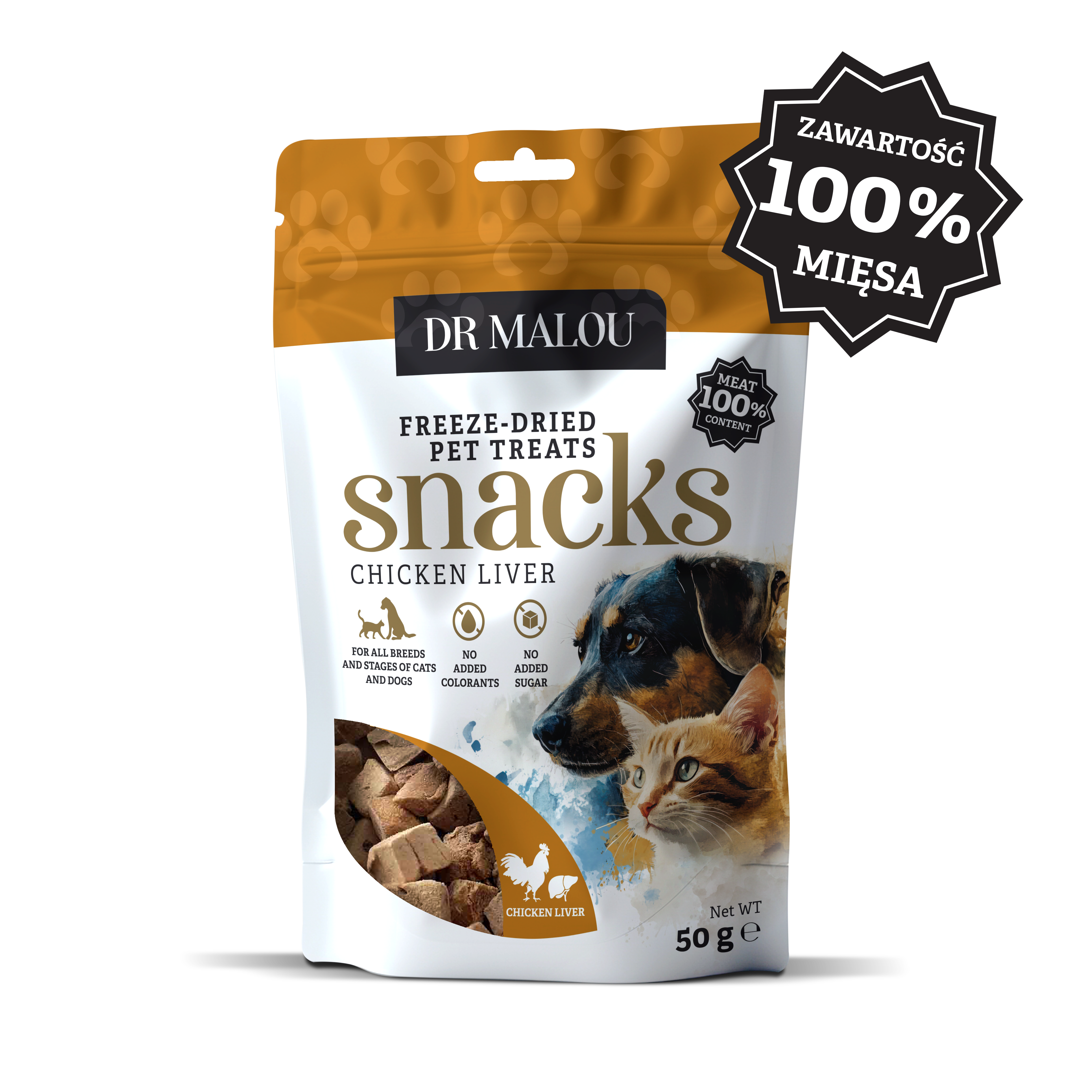 Liofilizowana wątroba z kurczaka Dr Malou to produkt w 100% naturalny, stworzony bez dodatku zbóż, glutenu, barwników i konserwantów. Nie zawiera cukru, soli ani mączki mięsnej – to czyste mięso, które może być bezpiecznie spożywane nawet przez zwierzęta z alergiami pokarmowymi czy wrażliwym układem trawiennym.
