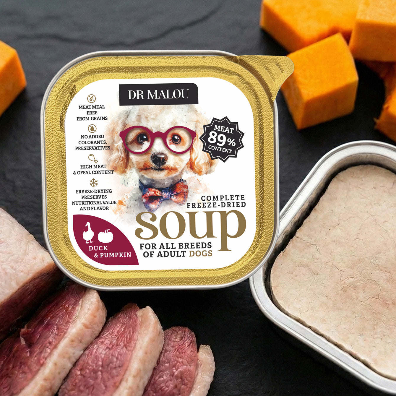 Zupka z kaczką i dynią – liofilizowana karma pełnoporcjowa dla psów