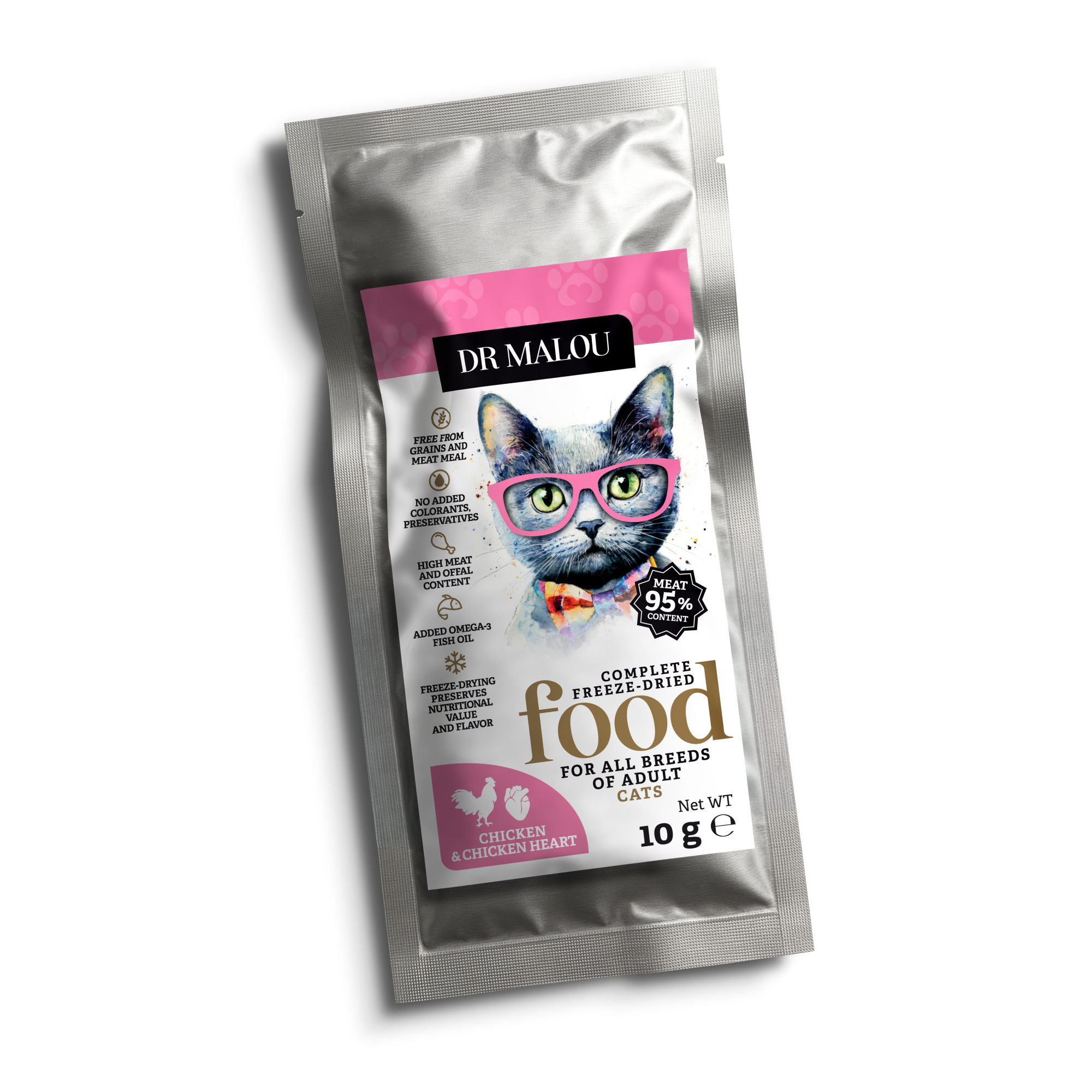 Dr Malou to liofilizowana karma dla kota, która odpowiada na biologiczne potrzeby mięsożercy. Skład został skomponowany w oparciu o bieżącą wiedzę dietetyczną, z myślą o zdrowiu, energii i długowieczności Twojego pupila. Proponowana karma zawiera m.in.: