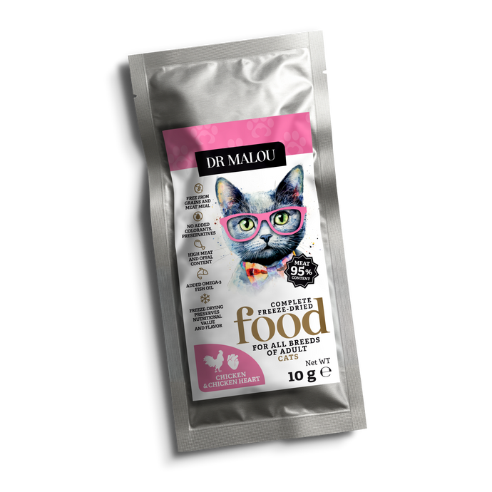 Kurczak z kurzymi sercami - Liofilizowana karma pełnoporcjowa dla dorosłych kotów - 10g próbka
