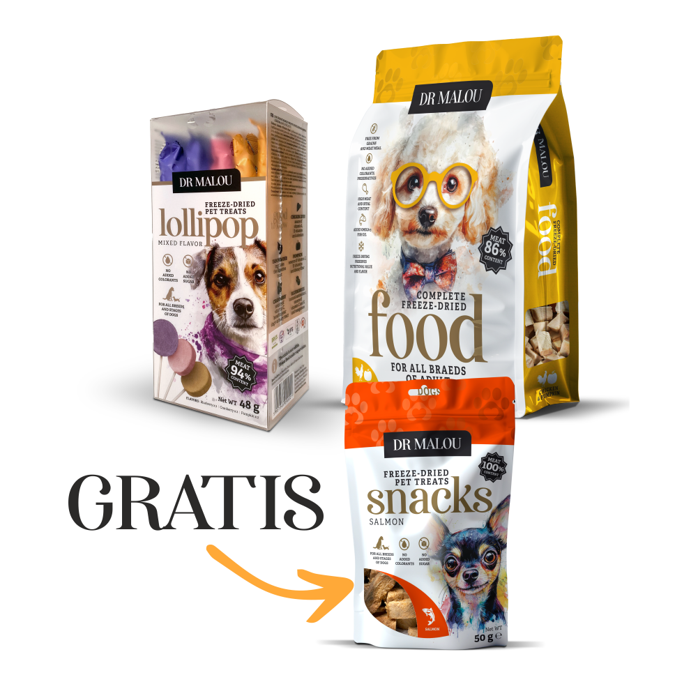 Zestaw łączy w sobie pełnowartościową karmę, funkcjonalne przysmaki i dodatkowy prezent, dzięki czemu Twój pies zyska zdrową dietę i mnóstwo radości każdego dnia.