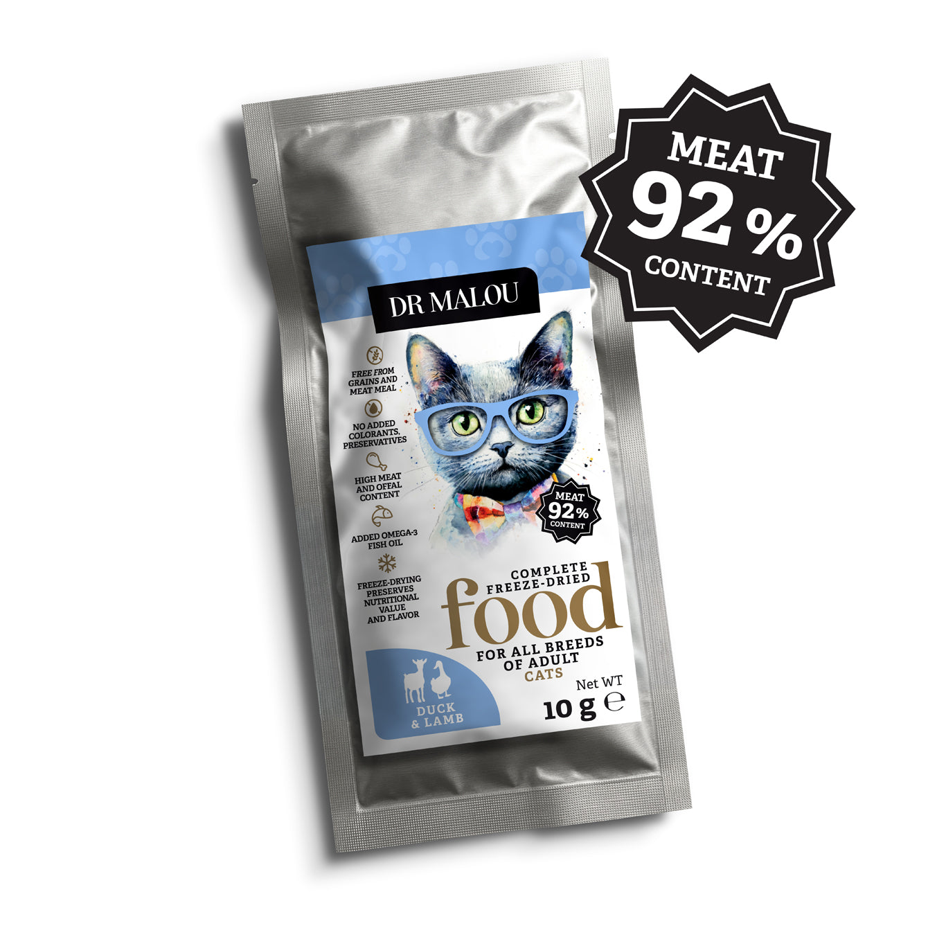 Dr. Malou Ente & Lamm ist ein Alleinfuttermittel für ausgewachsene Katzen, die eine natürliche, saubere und schmackhafte Ernährung verdienen.