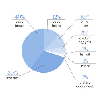 Dr. Malou Ente und Lamm zeichnet sich durch seinen hohen Proteingehalt (58 %) und Fettgehalt (30 %) aus, der Energie liefert und den Erhalt einer gesunden Muskelmasse fördert. Ballaststoffe und Mineralstoffe unterstützen eine gesunde Verdauung, während eine Mischung aus Vitaminen und Spurenelementen ( darunter Taurin, Eisen, Zink, Kupfer und Jod ) Herz, Sehkraft und Immunsystem stärkt.