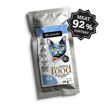 Dr. Malou Ente & Lamm ist ein Alleinfuttermittel für ausgewachsene Katzen, die eine natürliche, saubere und schmackhafte Ernährung verdienen.