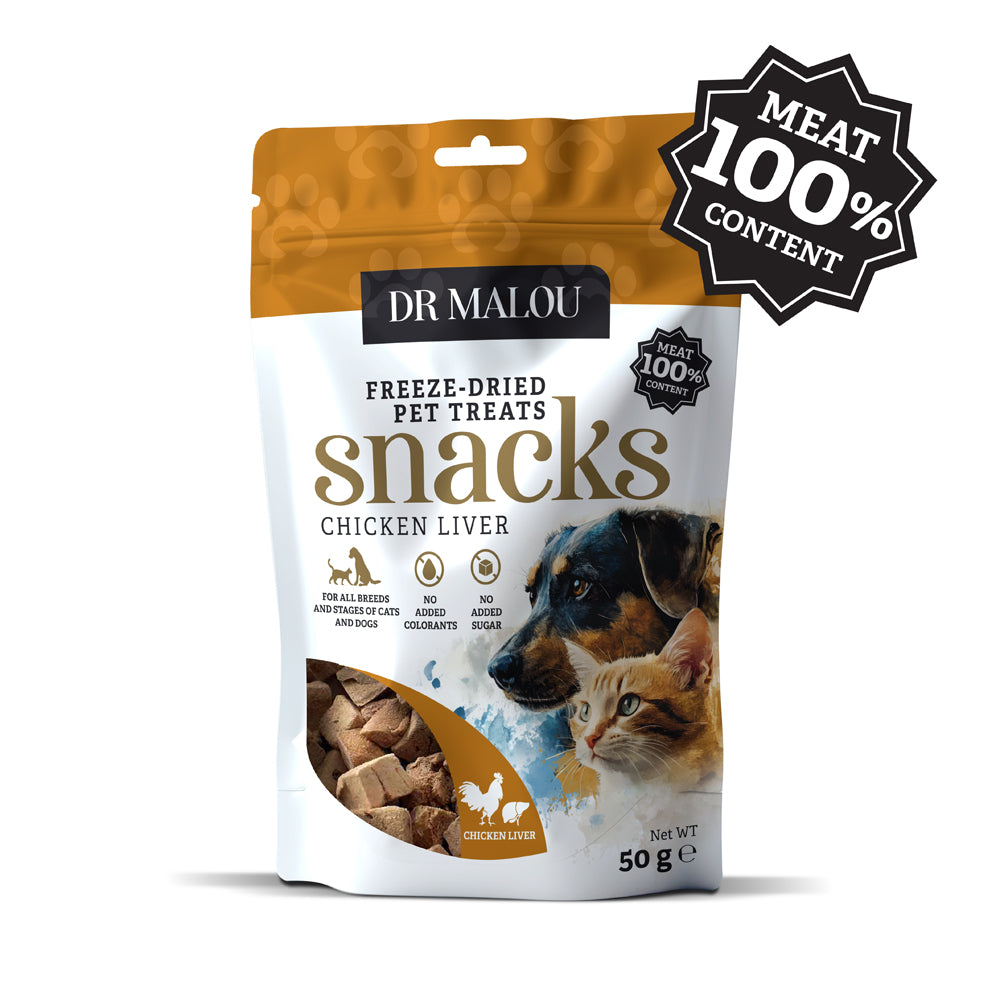 Dr. Malou 100% Hühnerleber-Ergänzungsfutter ist eine Delikatesse für Hunde und Katzen, die reines, natürliches und vollwertiges Futter verdienen.